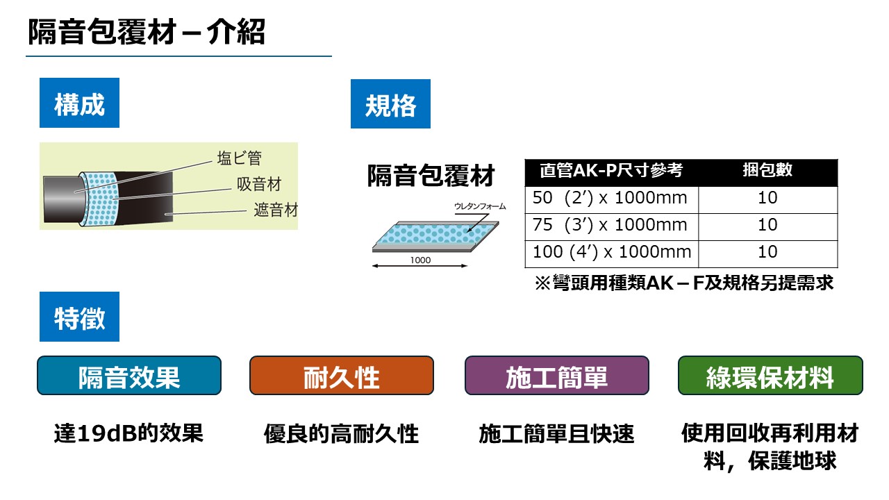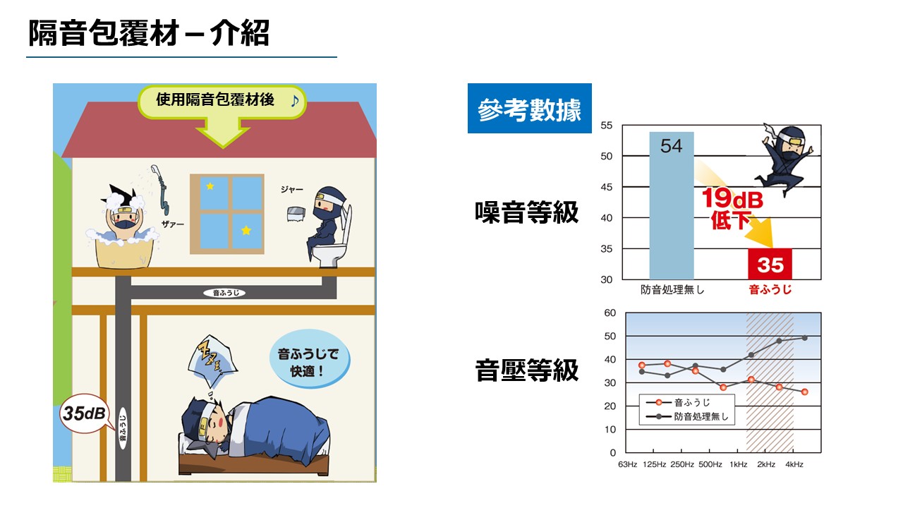 吸音材料 = 回收聚氨酯,隔音材料 = 回收PVC板